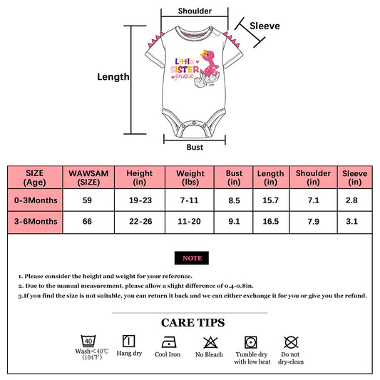 Little Sister Bodysuit Newborn Baby Girls’ Dinosaur Romper Sibling Outfit Infant Toddler Cotton Printed Short sleeve Onesies Dino Casual Summer Jumpsuit Gift (white, 0-3 Months)