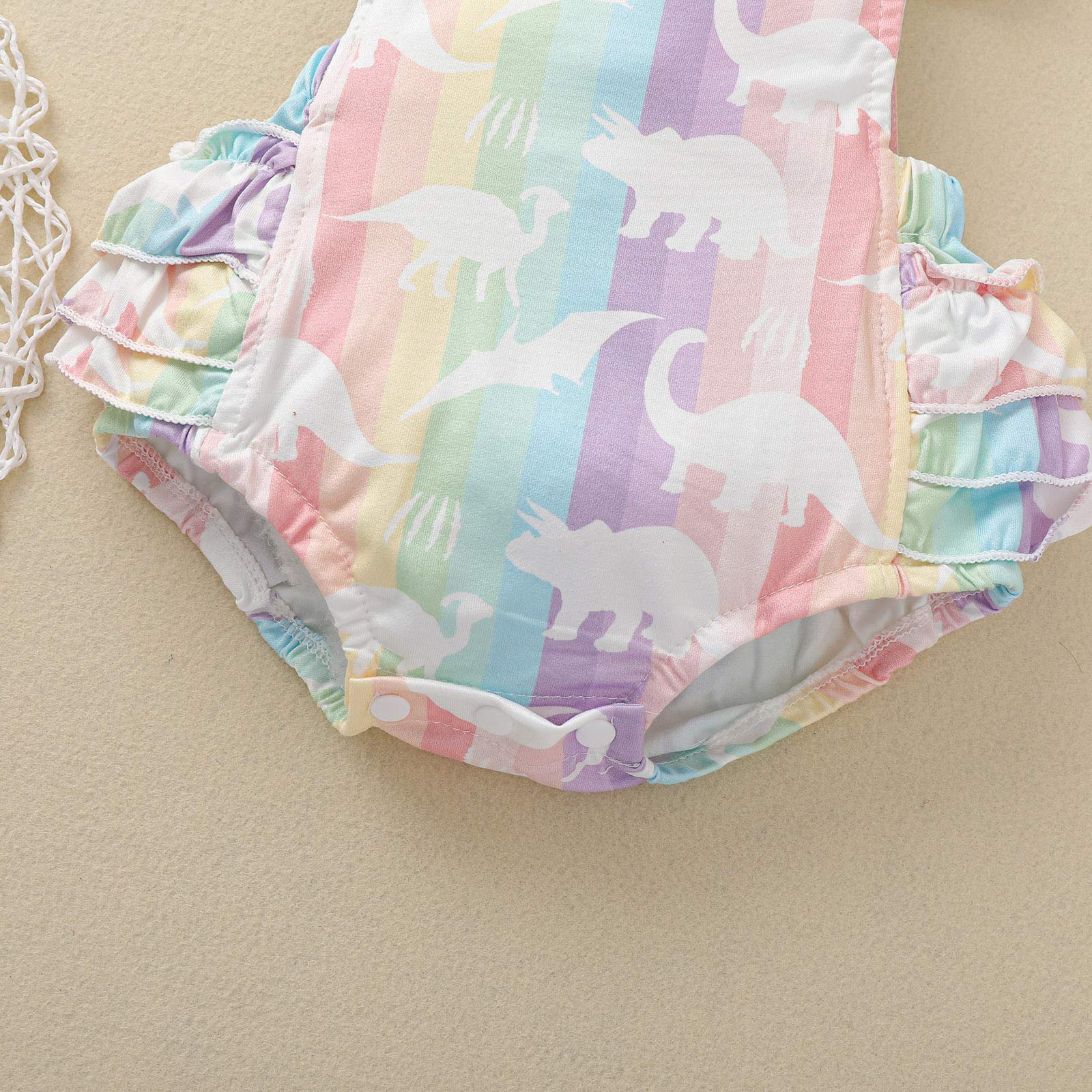 Item: Newborn Baby Girl Clothes Rainbow Romper Ruffled Sleeveless Dinosaur Jumpsuit Backless Bodysuit Infant Summer Outfit